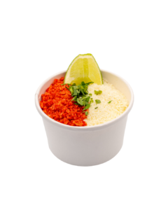 Mexican yellow rice with, choice of refried pinto beans (Non VG) or black beans(VG).