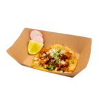 Nixtamal Corn tortillas, choice of filling, garnished with onions, cilantro, radish and lime, Salsa come on side.