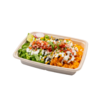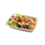 Choice of Playa yellow rice or greens (blend of hearty kale and crispy romaine), Mexican black beans, Playa pico de gallo, shredded jack – cheddar cheese, Mexican crema, salsa verde (Greens come with sides of Aztec Goddess dressing & crushed tortillas).