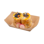 Hand-made Sonoran Style flour tortilla, stuffed with jack-cheddar cheese, queso, and your choice of meat or camote (sweet potato).